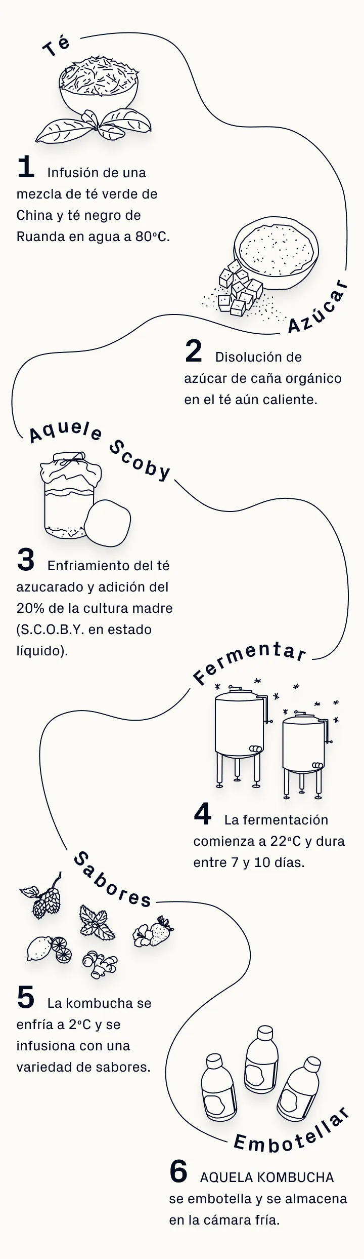 Desde la selección de productores orgánicos hasta la gestión de nuestra fábrica, privilegiamos prácticas que minimizan el impacto de nuestra producción en el medio ambiente. Aunque su impacto ambiental es inevitable, tenemos la sostenibilidad como pilar y por eso apostamos por envases 100% reciclables de origen certificado, compostamos todos los residuos orgánicos de producción, instalamos una EDAR para tratar el efluente de la fábrica y optimizamos procesos para evitar el desperdicio de agua. Pero esta mejora es continua y estamos en constante búsqueda de nuevos procesos para reducir nuestro impacto, optimizándolos continuamente para que la producción de Aquela Kombucha sea más eficiente y respetuosa con el planeta.